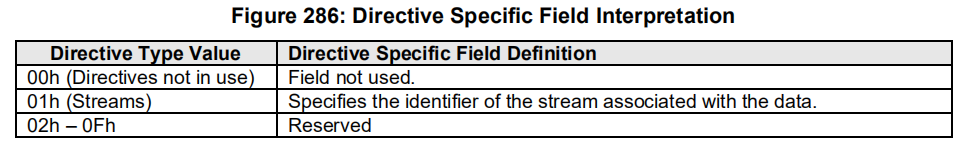 Directive Specific field 和 Directive Operation field 取决于特定的指令类型(directive send还是directive receive还是I/O command)